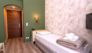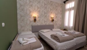 Ποικίλουν σε μονόκλινα, δίκλινα με διπλό κρεβάτι ή με δύο μονά ενωμένα χωρίς κενό ενδιάμεσα. Υπάρχει η δυνατότητα έκτακτης διαμόρφωσης συγκεκριμένων δωματίων σε τρίκλινα με έξτρα κρεβάτι. Παρέχουμε τέλος την δυνατότητα συνένωσης δύο δίκλινων δωματίων, για την φιλοξενία οικογενειών ή ενηλίκων.