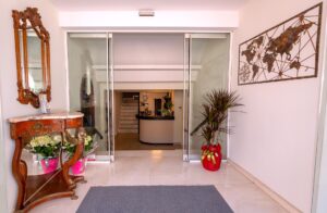 Hotel’s facilities include a patio with a swimming pool – whirlpool, measuring 45 sq.m. with a maximum depth of 1.45 m. Ideal for water games, relaxation and wellness. On the patio you can also enjoy your breakfast, coffee or drink. Pool opening hours: 09:00 – 14:30 & 17:45 – 20:30.