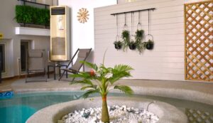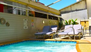 Στις παροχές του ξενοδοχείου περιλαμβάνεται αίθριο με την λειτουργία πισίνας – υδρομασάζ, έκτασης 45 τ.μ με μέγιστο βάθος 1,45 μ. Ιδανική για παιχνίδια στο νερό, χαλάρωση και ευεξία. Στο αίθριο μπορείτε επίσης να απολαύσετε το πρωινό, τον καφέ ή το ποτό σας. Ωράριο λειτουργίας πισίνας: 09:00 – 14:30 & 17:45 – 20:30.